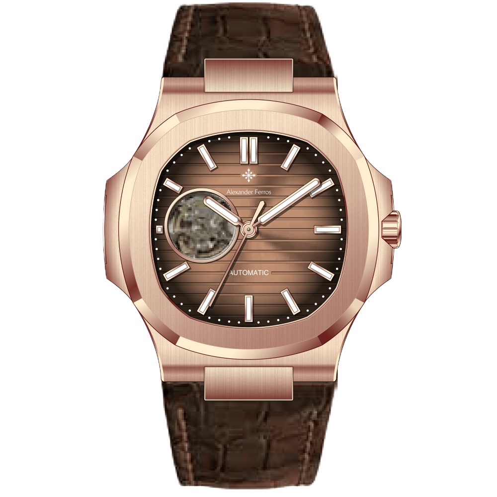 Alexander Ferros 6102 là mẫu đồng hồ cơ lộ tim đầy cuốn hút, dành cho những quý ông yêu thích sự đẳng cấp và khác biệt. Sản phẩm được giới thiệu với hai phiên bản nổi bật: