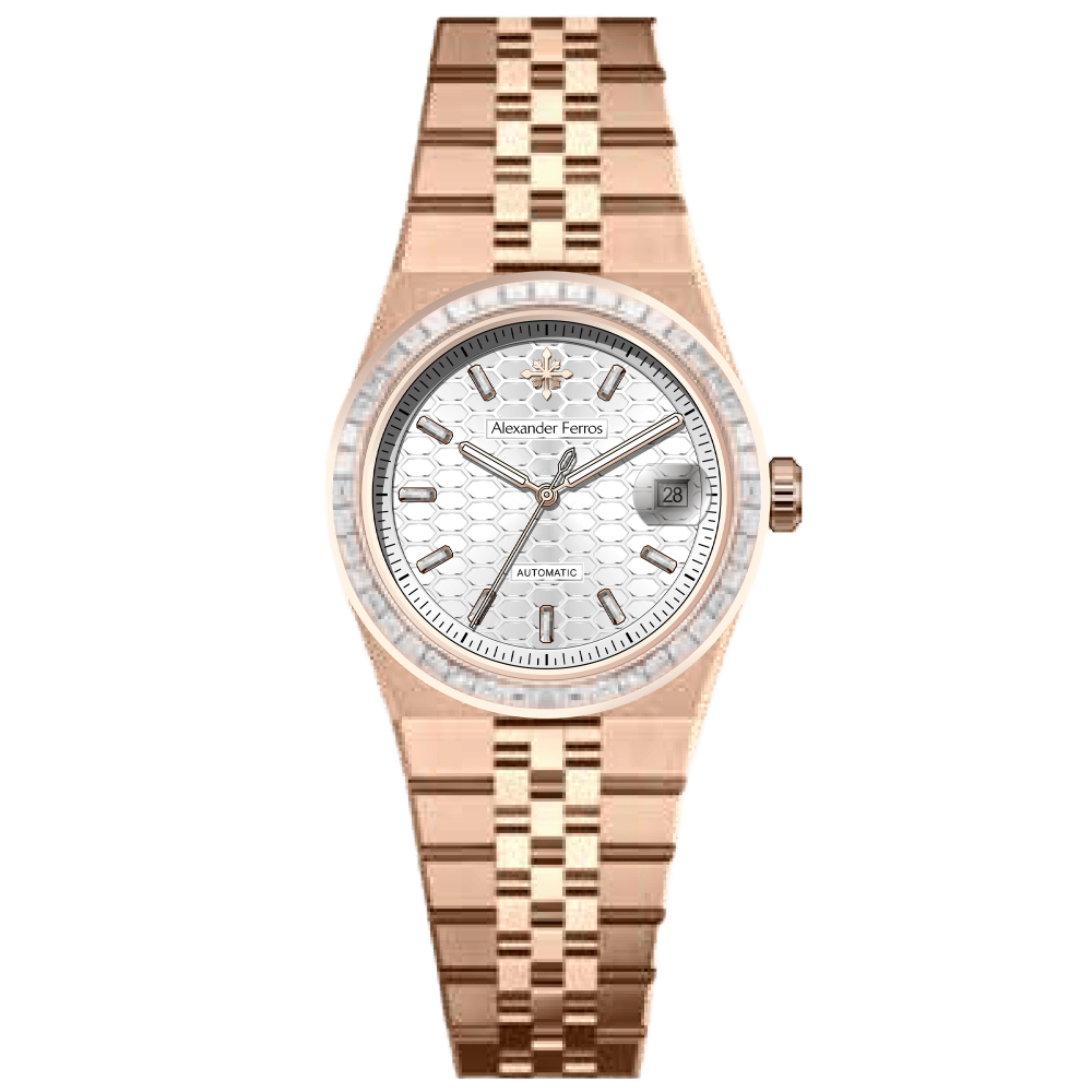 Alexander Ferros 8181R là dòng đồng hồ cao cấp nổi bật với thiết kế demi sang trọng và viền đá đính tinh xảo. Bộ máy Nhật Bản bền bỉ cùng kính sapphire chống trầy giúp sản phẩm vừa thời trang vừa chất lượng, lý tưởng cho những ai yêu sự đẳng cấp và tinh tế.